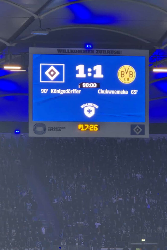 In dem Bericht taucht Borussia nicht auf. Wenngleich das spielerische Vermögen der Truppe ebenfalls auf einen eklatanten Mangel hinweist. Zuletzt wieder zu begutachten zum Abschluss der BVB-Auswärtswochen in Hamburg. So schwach, wie sich der HSV zuhause präsentierte, muss eine Spitzenmannschaft – trotz aller Anstrengungen in letzter Zeit – in der Lage sein, das ganze Portfolio in die Waagschale zu werfen und auf dem Parkett zu performen. Das hat nicht geklappt. Das 1:1 nach 90 Minuten ist eindeutig zu wenig und offenbart Defizite im Dutzend.