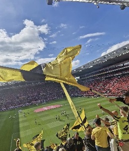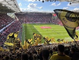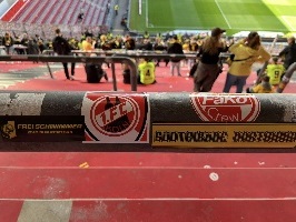 Mit dem schweren Thema im Gepäck folgte der Marsch in die Mewa-Arena, nicht ohne auf der Strecke in Form von Stickern Spuren zu hinterlassen. Auch, um sich etwas abzulenken. Dazu geeignet war zudem das Spiel. Souverän spulte das Kovac-Team die Partie herunter, ging nach einer Schrecksekunde – ein Mainzer Pfostentreffer – zügig mit 2:0 in Führung. Das Ergebnis behielt nach 90 Minuten Bestand. Wieder ein Sieg. Wieder zu Null. Die gute Tabellenposition wurde behauptet. Somit steuerten erleichterte Freischwimmer nach dem Feiern der Mannschaft mit dem Shuttlebus den Mainzer Bahnhof an, um den Regionalzug nach Frankfurt und dort den ICE nach Dortmund zu besteigen.