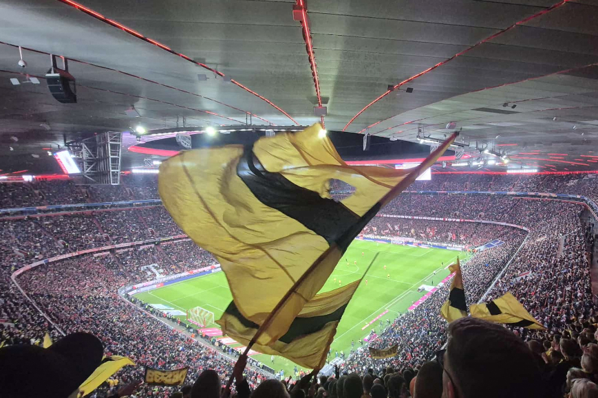 Beispiele für wegweisende Matches sind die Auswärtspartien des BVB in München. Eine Gruppe Freischwimmer machte sich auf, um hinter dem Weißwurstäquator auf den Rängen mitzuhelfen, den Bauern auf dem Feld ein Beinchen zu stellen. Früh traf die Gruppe in München ein, um Zeit zu haben, den Marienplatz zu besuchen und in der Innenstadt Sehenswürdigkeiten wie das mit schwarz-gelben Fahnen geschmückte Rathaus in Augenschein zu nehmen.