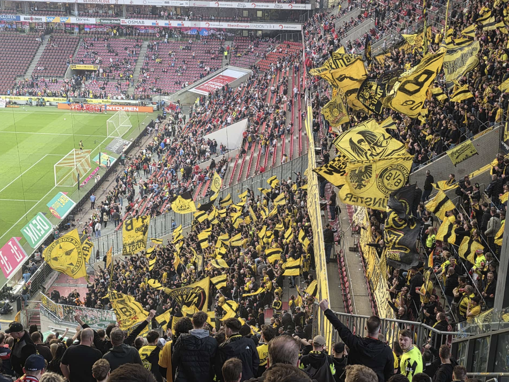 Mit Zügen, PKW und Bussen machte sich die Gruppe auf, um sich bereits ein paar Stunden vor dem Anpfiff bei frühlingshaften Temperaturen in Müngersdorf auf das Match einzustimmen. Mit Vertretern der befreundeten Clubs Schwarz-Gelbe Lüner und Werseborussen wurde viel diskutiert über das letzte Spiel gegen die Bayern, Auswärtsleistungen des BVB generell, personell anstehende Veränderungen im Kader oder auch persönlichen Dingen. Nicht jedoch darüber, wer die nächste Runde Bier einläutet. Das läuft in der Regel automatisiert und bedarf keiner strategischen Herangehensweise.